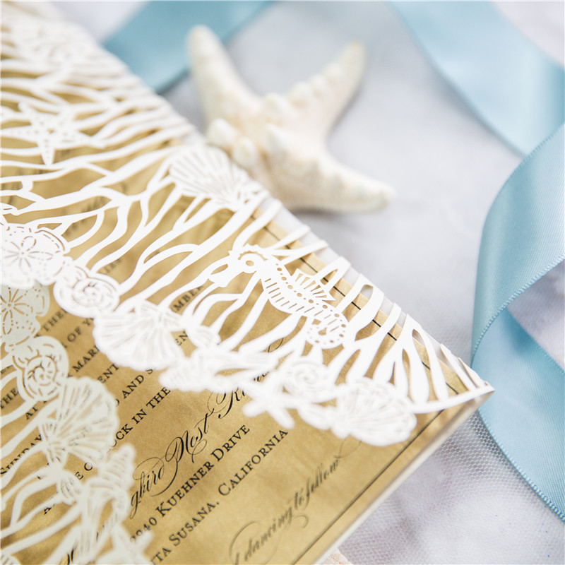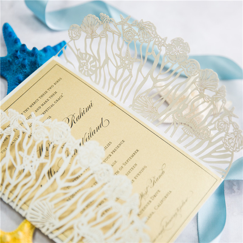 Faire Part de Mariage Ciselé Thème plage MWPL0176
