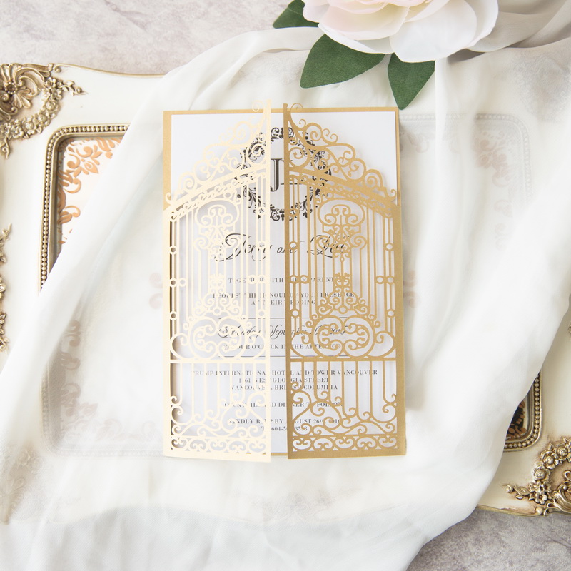 Faire Part de Mariage Ciselé Thème Porte du Bonheur MWPL0172